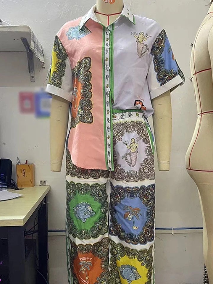 Beautiful Soft Print Hight Loose Pants and Shirt Set - can be bought as a set or as individual pieces