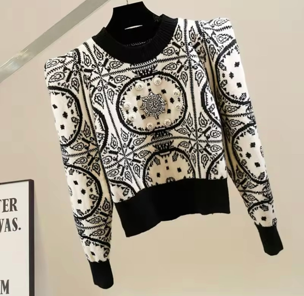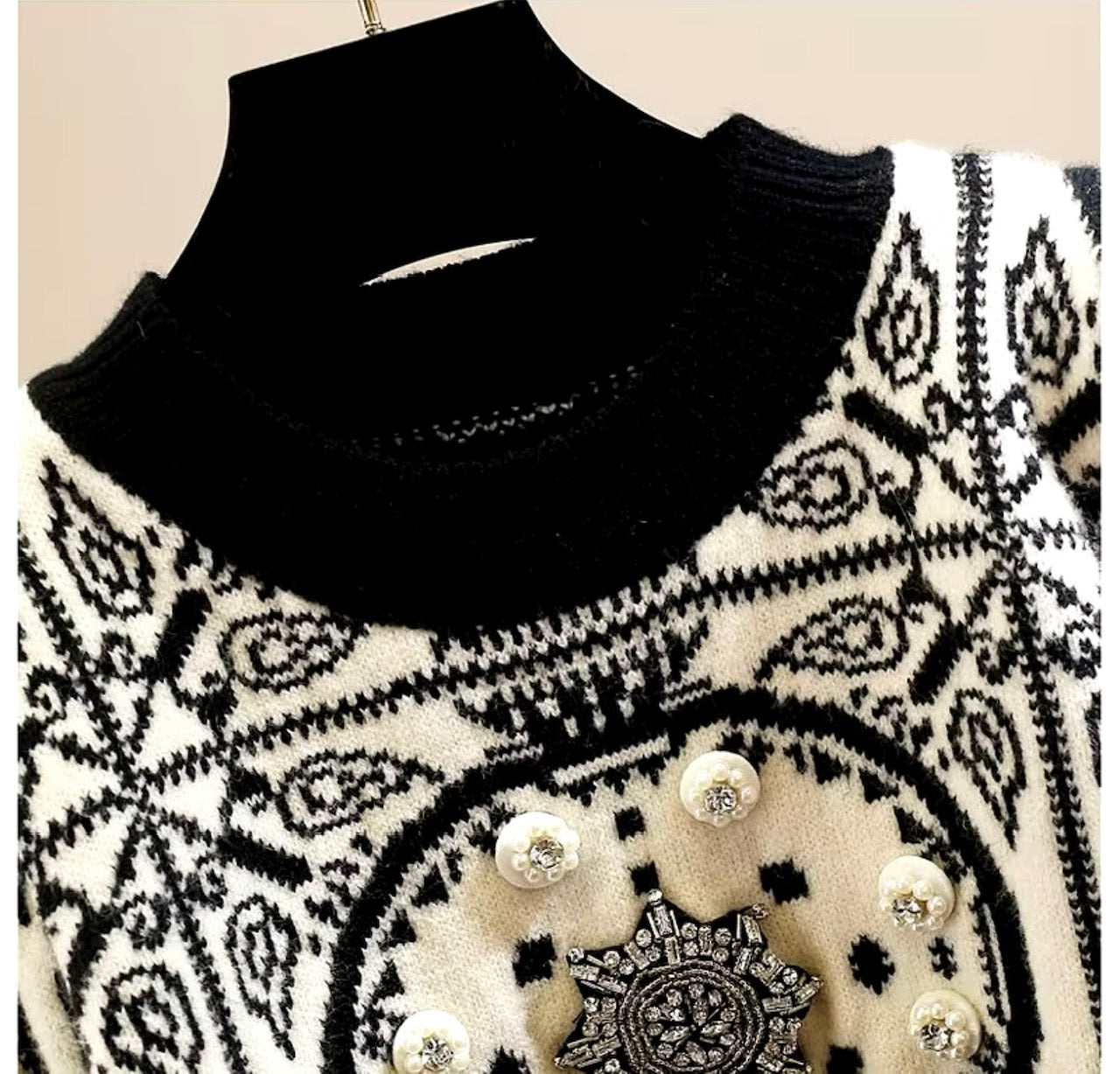 Beautiful vintage style jumper - check out the button and brooch detail on the front!