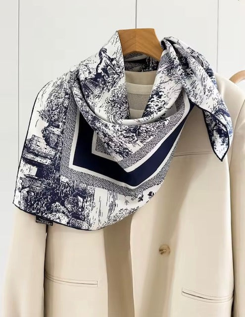Hand Rolled Edges with Exquisite Printing - Featuring Beautiful Patterns, the Intricate Designs are Precisely Presented, Making the Scarf Both Elegant and Luxurious.