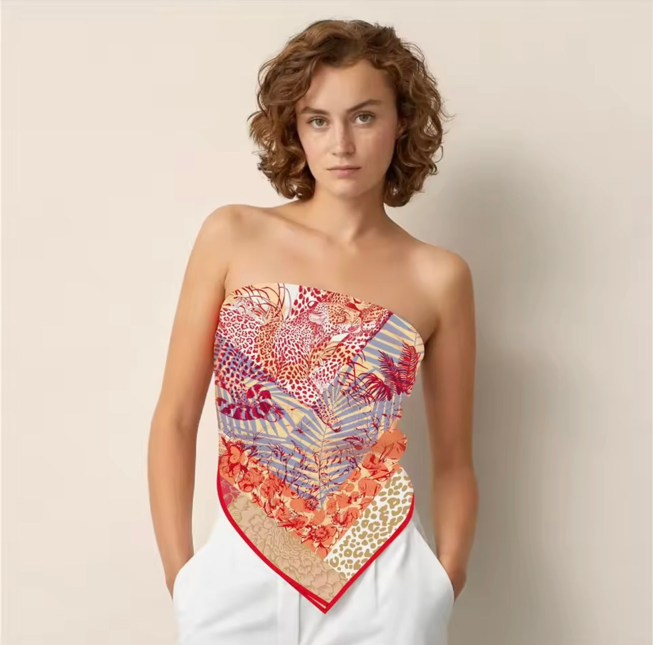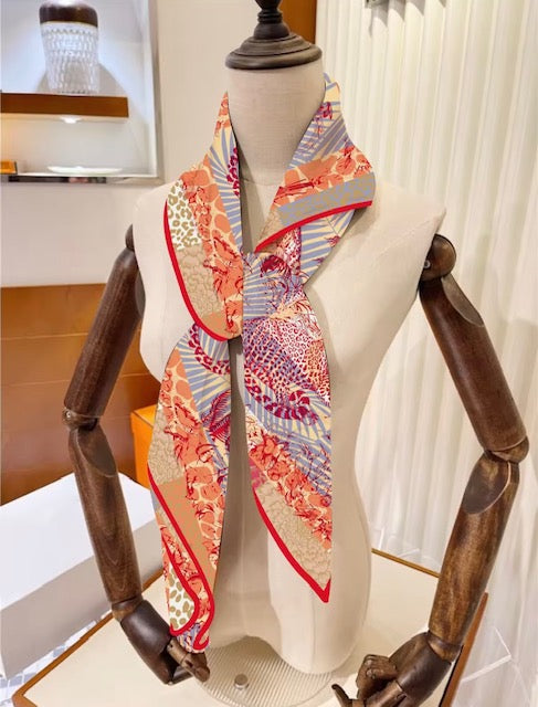 This luxury double-sided silk scarf measures 90x90cm, making it a versatile and elegant accessory for women. The thin shawl can be worn in various ways, from a simple neck accessory to a stylish head covering. Its high-quality material and exquisite design make it a perfect addition to any outfit, adding a touch of sophistication and flair to your look. Ideal for various occasions, this scarf is a must-have for any fashion-forward woman looking to elevate her style.