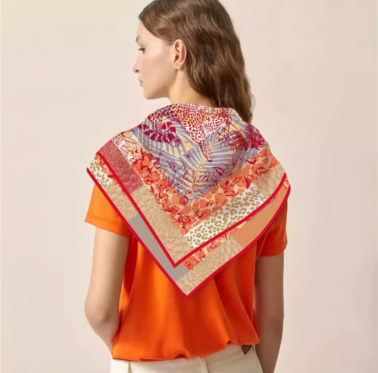 Luxury Double Sided Printing Silk Scarf 90x90cm