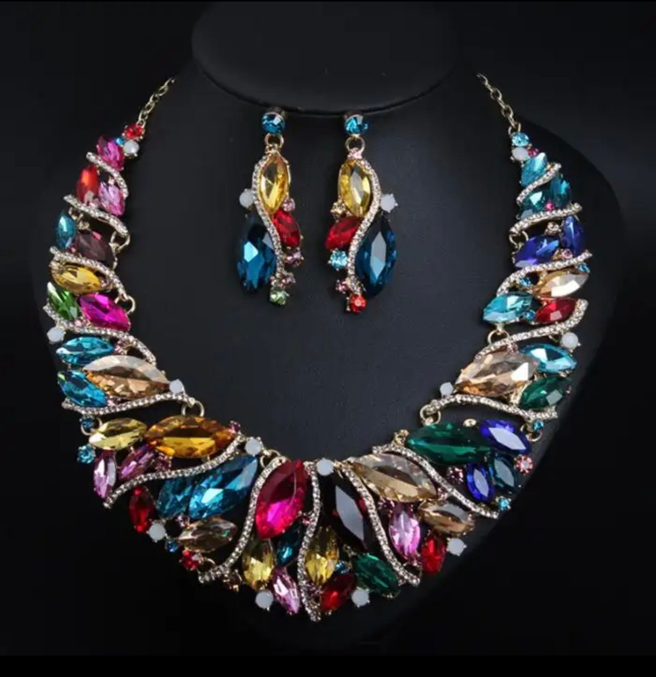 High grade electroplated alloy colour preserving jewellery set with AAA+ crystal glass gemstones