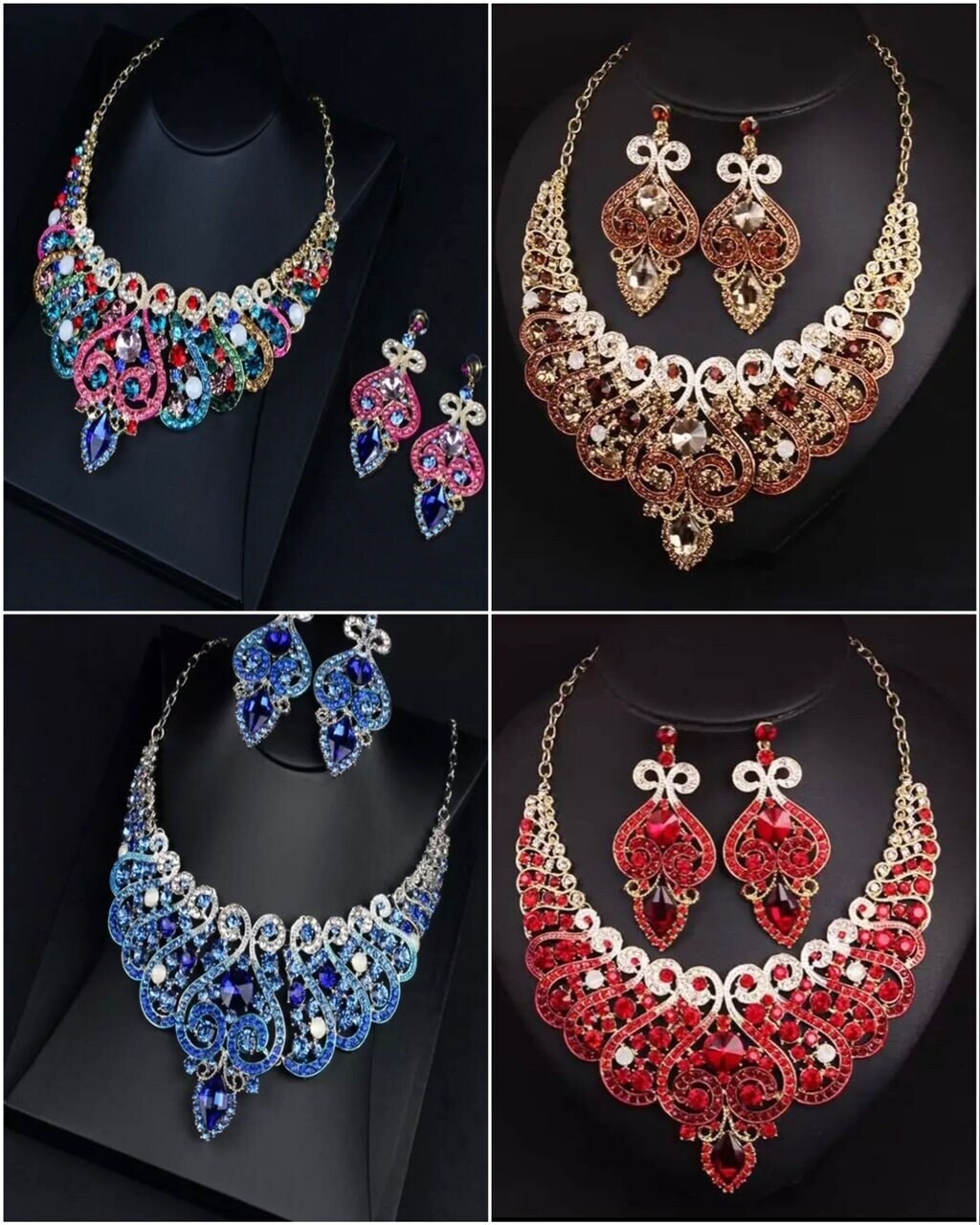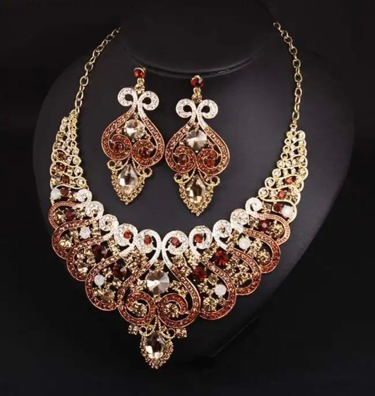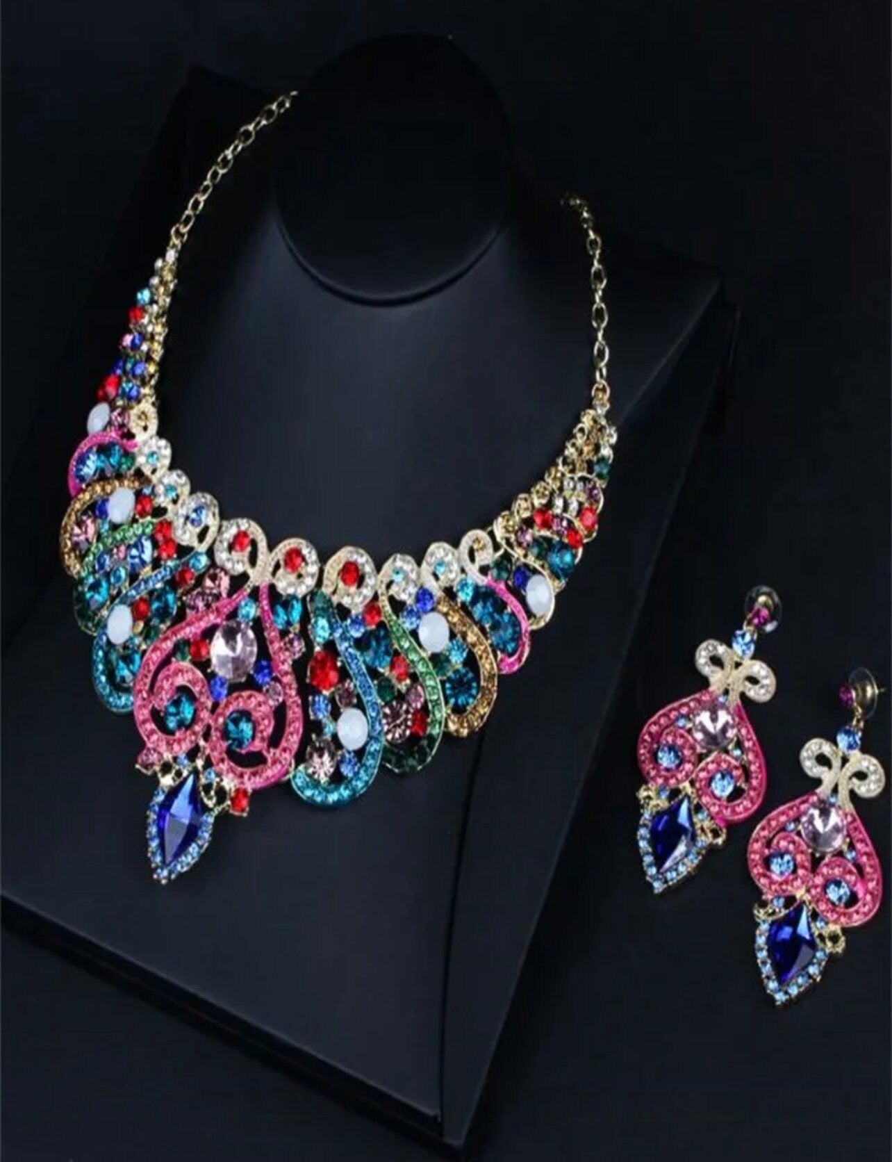Dazzling statement Necklace and Earring Set - Retro Chic