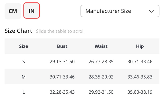 Please refer to size chart before ordering and use the measurements of the chart as your guide - one chart shows the measurments in cms and the other in inches