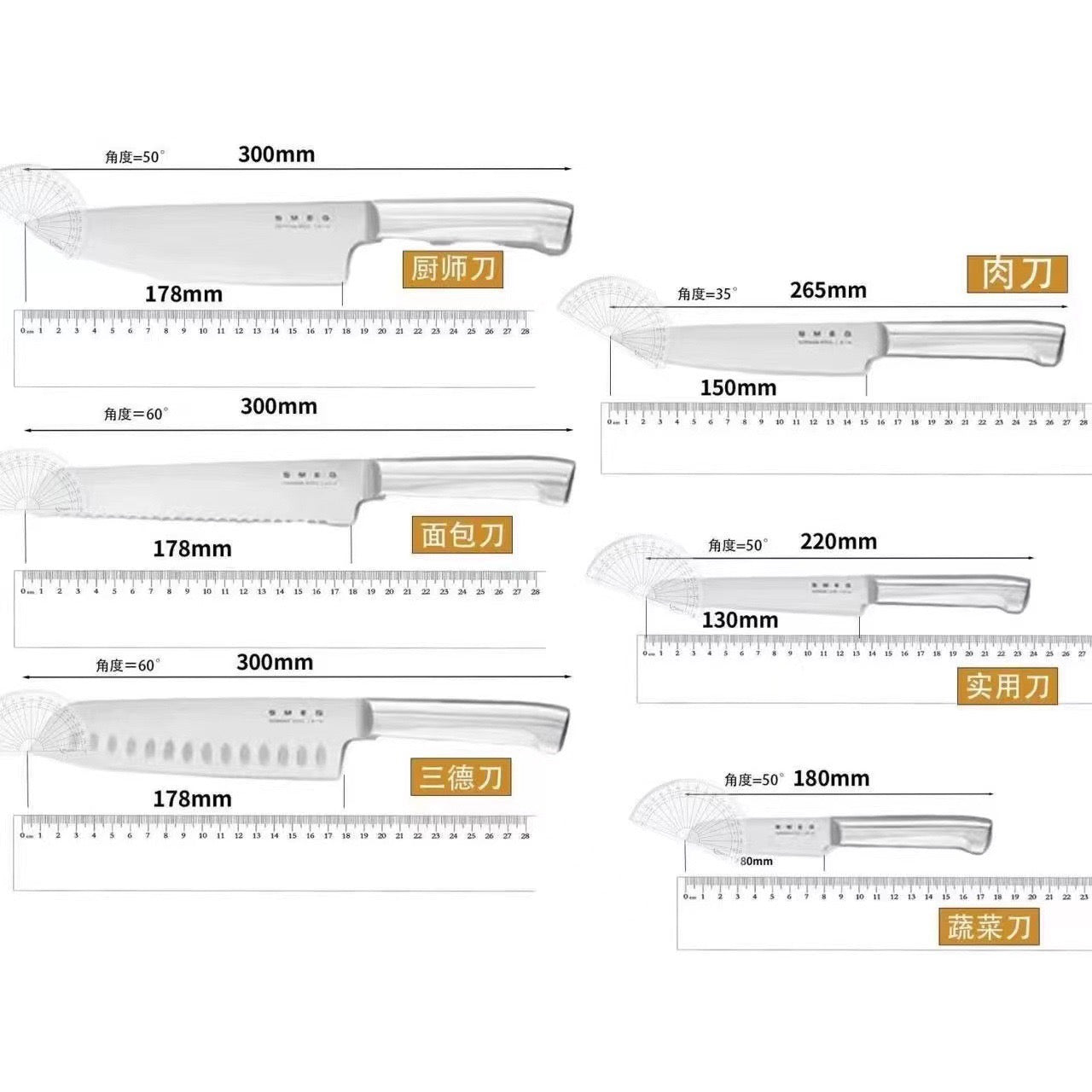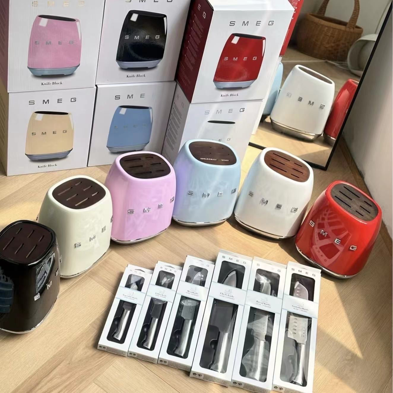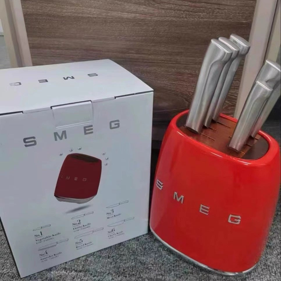 Smeg Retro 6 Piece Knife Set and Block