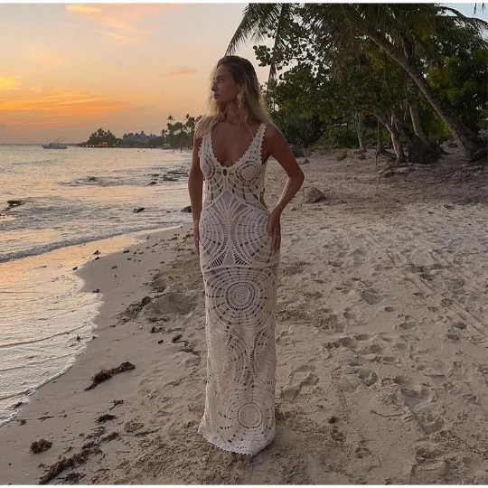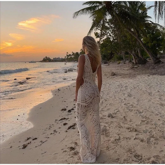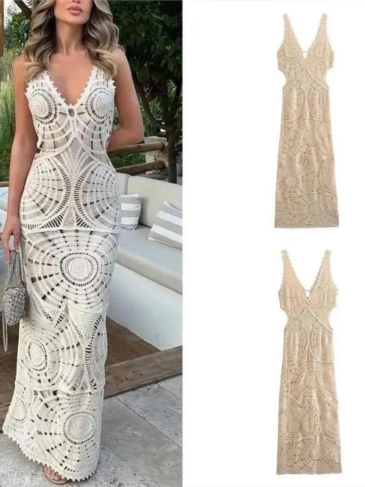 Unveil beachside beauty with our Summer Crochet Maxi Dress. Boho vibes meet elegance in this enchanting piece.